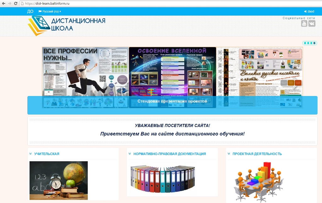 http://dist-learn.baltinform.ru Специализированный ресурс для реализации проектной деятельности с использованием дистанционных образовательных технологий. Реализация обучения возможна только в асинхронном режиме |